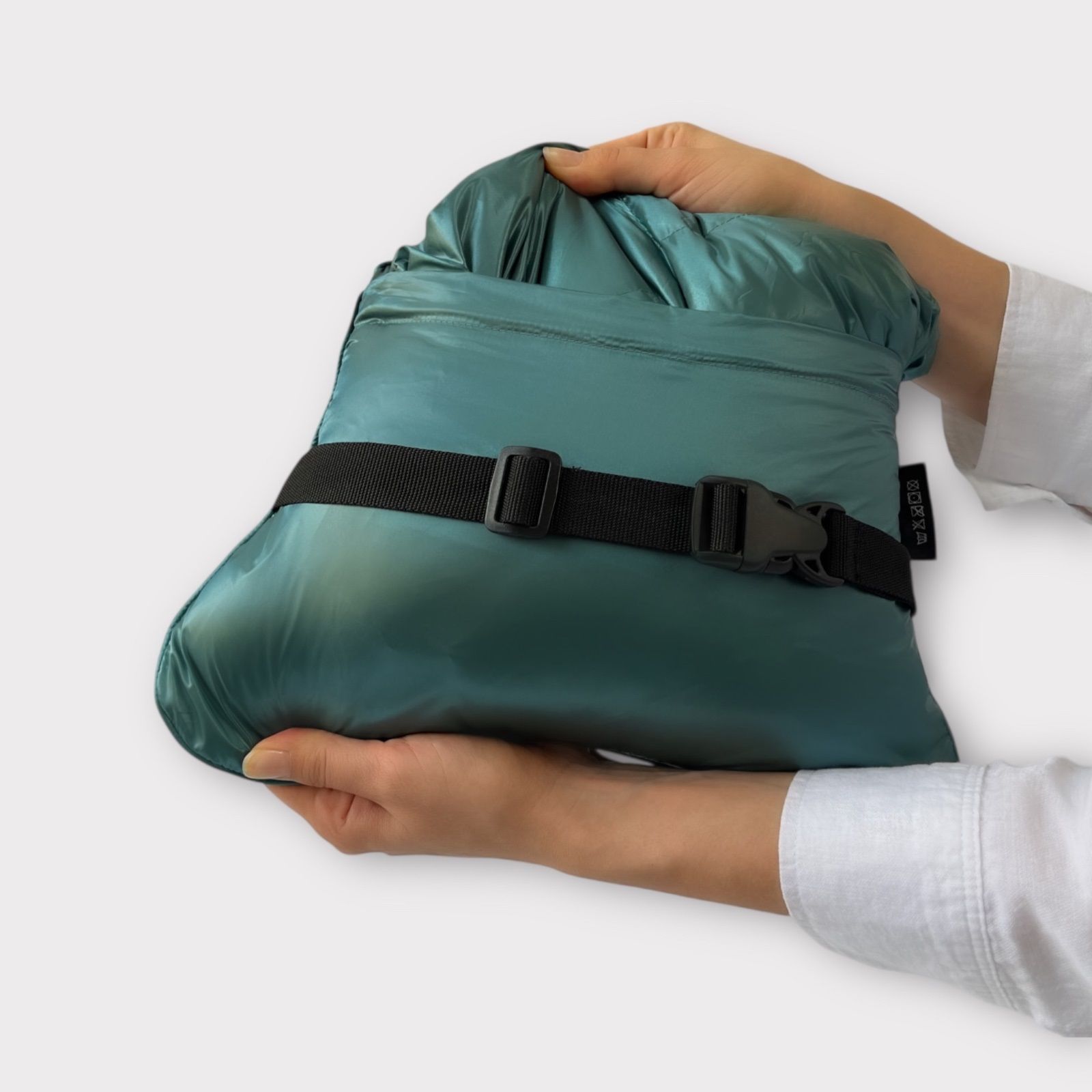 Главная КАТАЛОГ Дорожные пледы Дорожный плед-пончо пуховый Travel Cape Plaid Grass Aqua 130х170
