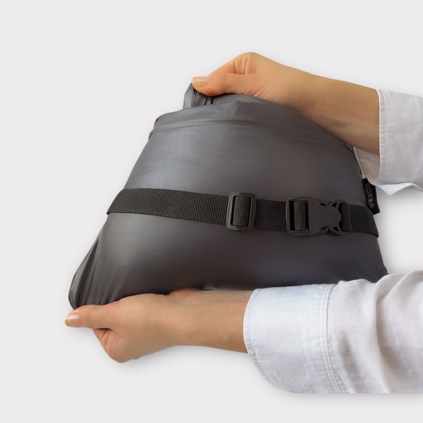 Для перевозки и хранения плед укомплектован удобным многофункциональным чехлом, который в поездке можно превратить в автомобильную подушку-подголовник. Зафиксировать такую подушку поможет встроенная ручка-стропа.