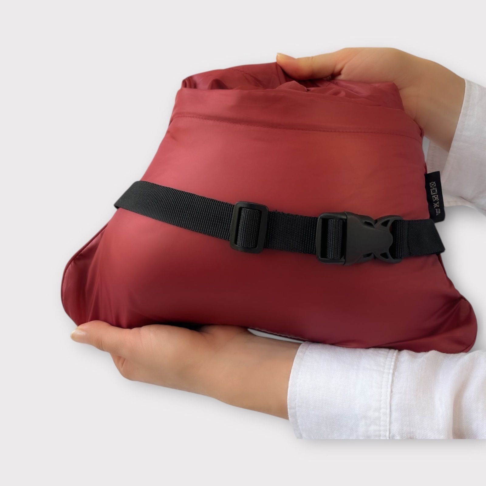Для перевозки и хранения плед укомплектован удобным многофункциональным чехлом, который в поездке можно превратить в автомобильную подушку-подголовник. Зафиксировать такую подушку поможет встроенная ручка-стропа.