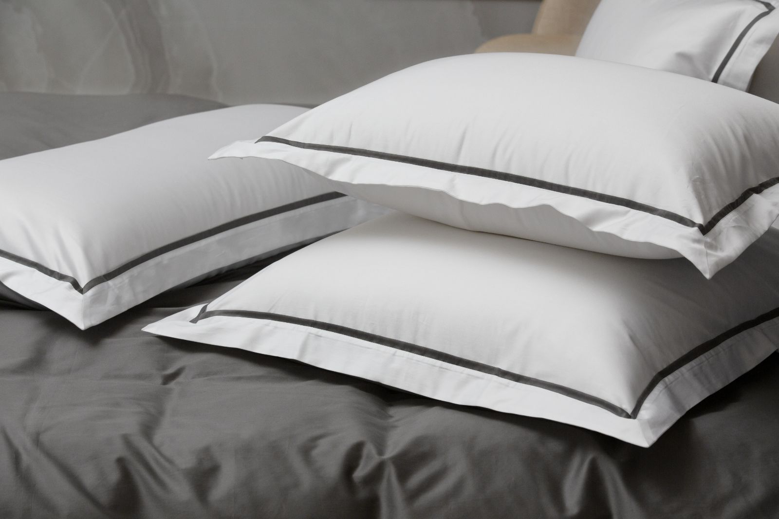 Комплекты и отдельные предметы, наделенные благородным сиянием благодаря сатиновому плетению, представлены в белом (Alpine White), шоколадном (Brownie), карамельно-бежевом (Caramel-Beige), светло-сером (Ash Grey) и темно-сером (Graphite) оттенках.