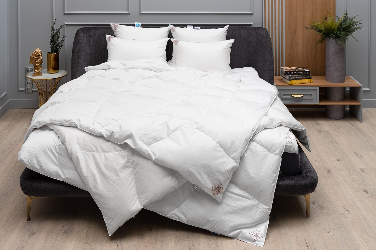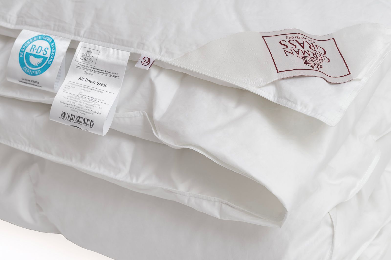 Коллекция Air Down Grass полностью соответствует своему названию: необыкновенная легкость и воздушность изделий обусловлена сочетанием тончайшего хлопкового батиста (Fine batiste) высокой плотности и отборного гусиного пуха. Одеяла изготовлены по технологии BOX- QUILTING ®, которая позволяет создавать доступные по цене стеганные пуховые одеяла, которые по многим параметрам не уступают кассетным. Метод минимизирует миграцию наполнителя наружу, позволяя одеялу оставаться пышным весь срок эксплуатации и даже продлевает его, снижая износ ткани чехла. Эргономичная стежка “КОКОН” повторяет контуры тела человека и способствует равномерному прилеганию одеяла. Подушки невысокие, мягко поддерживают и разгружают шею во время сна. Подушки допускается стирать при температуре до 30°С. Для одеял рекомендована только сухая чистка.