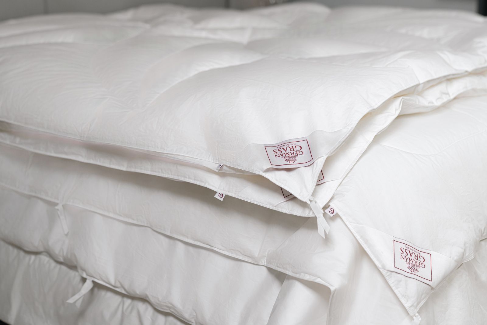 Сочетание отборного белого гусиного пуха из северных регионов и нежного пуходержащего макосатина из длинноволокнистого египетского хлопка (Macosateen, TC 460) – безупречная классика жанра пуховых одеял. Уникальная технология создания стеганых одеял BOX- QUILTING®, разработанная и запатентованная специалистами German Grass, позволила создать стеганые одеяла ALLIANCE DOWN GRASS, не уступающие по параметрам кассетным и продлевающим их срок службы. В коллекции представлены одеяла с двумя степенями теплоты: всесезонное «Light» подойдет для использования в теплое межсезонье, а всесезонная модель не даст замерзнуть с наступлением небольших холодов. При объединении изделий в альянс, получается теплое одеяло, прекрасно согревающее в морозные зимние ночи. Также возможно дополнить любое из одеял изделиями из других коллекций ALLIANCE GRASS, подобрав идеальное сочетание для максимально комфортного сна. Рекомендована стирка при температуре до 30°С.