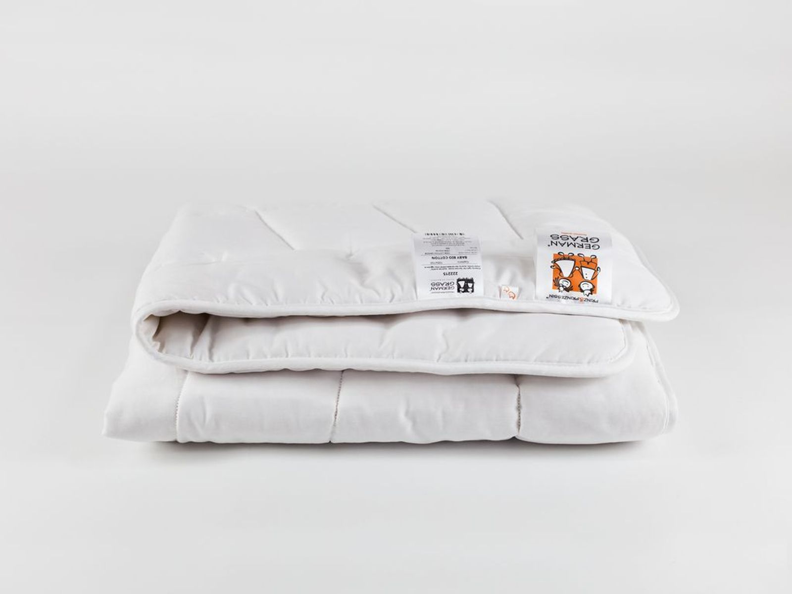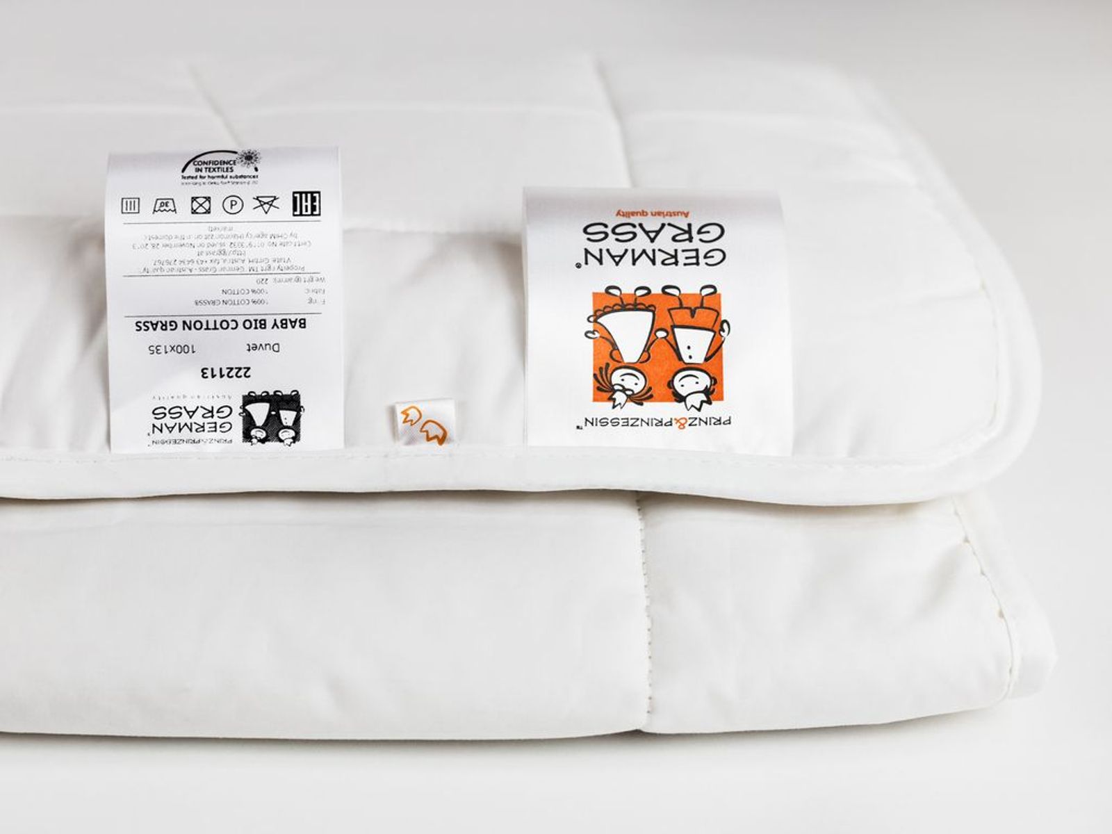 Материал чехлов подушек и одеял – натуральный хлопок – сертифицирован по международному стандарту Oeko-Tex® Standard 100. Он подтверждает отсутствие в ткани опасных для здоровья ребенка веществ. Рекомендована стирка при температуре до 30°С.