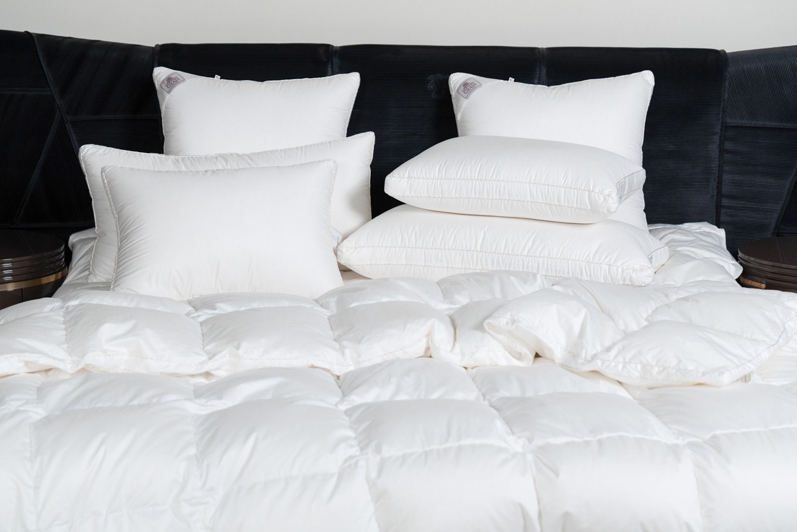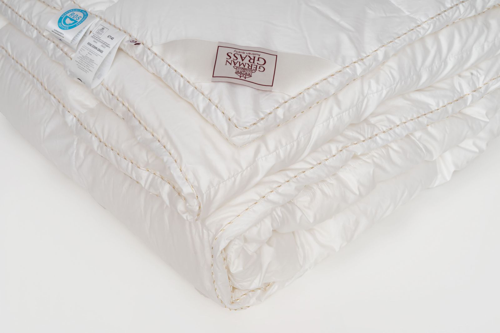 Немецкий хлопковый сатин высочайшей плотности соткан из тончайших нитей (Premium Satin – Nе 120/120 493 ТС) и прошел финишную обработку SanProCare® Sensitive, обеспечивающую усиленную гигроскопичность и придающую ей «пуховую мягкость». Особо тонкий, мягкий и «нешуршащий» чехол обладает повышенной износостойкостью и предотвращает проникновение пылевых клещей внутрь изделий. Наполнителем служит пух высочайшего качества, отобранный на гусиных фермах Сибири, которая, по утверждению биологов, является зоной проживания гусей, носящих пух максимально больших размеров, что, безусловно, влияет на пуховую массу положительно и наполнитель имеет повышенный коэффициент упругости (Fill Power), достигающий значений в 850 ед.