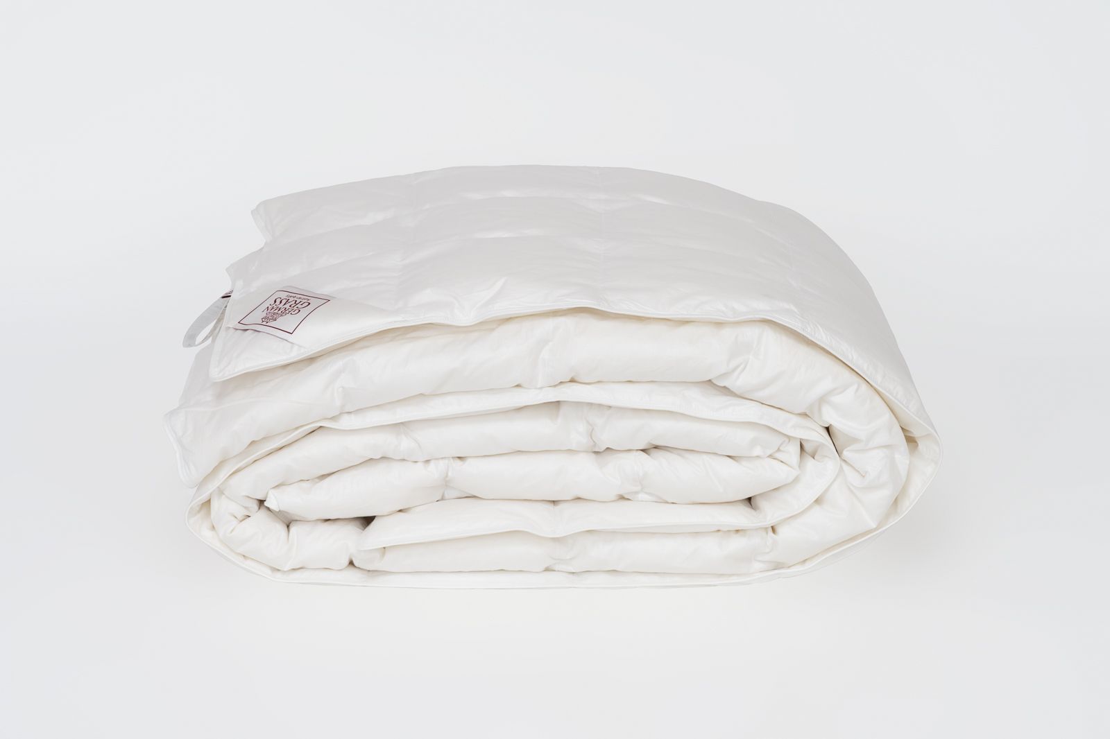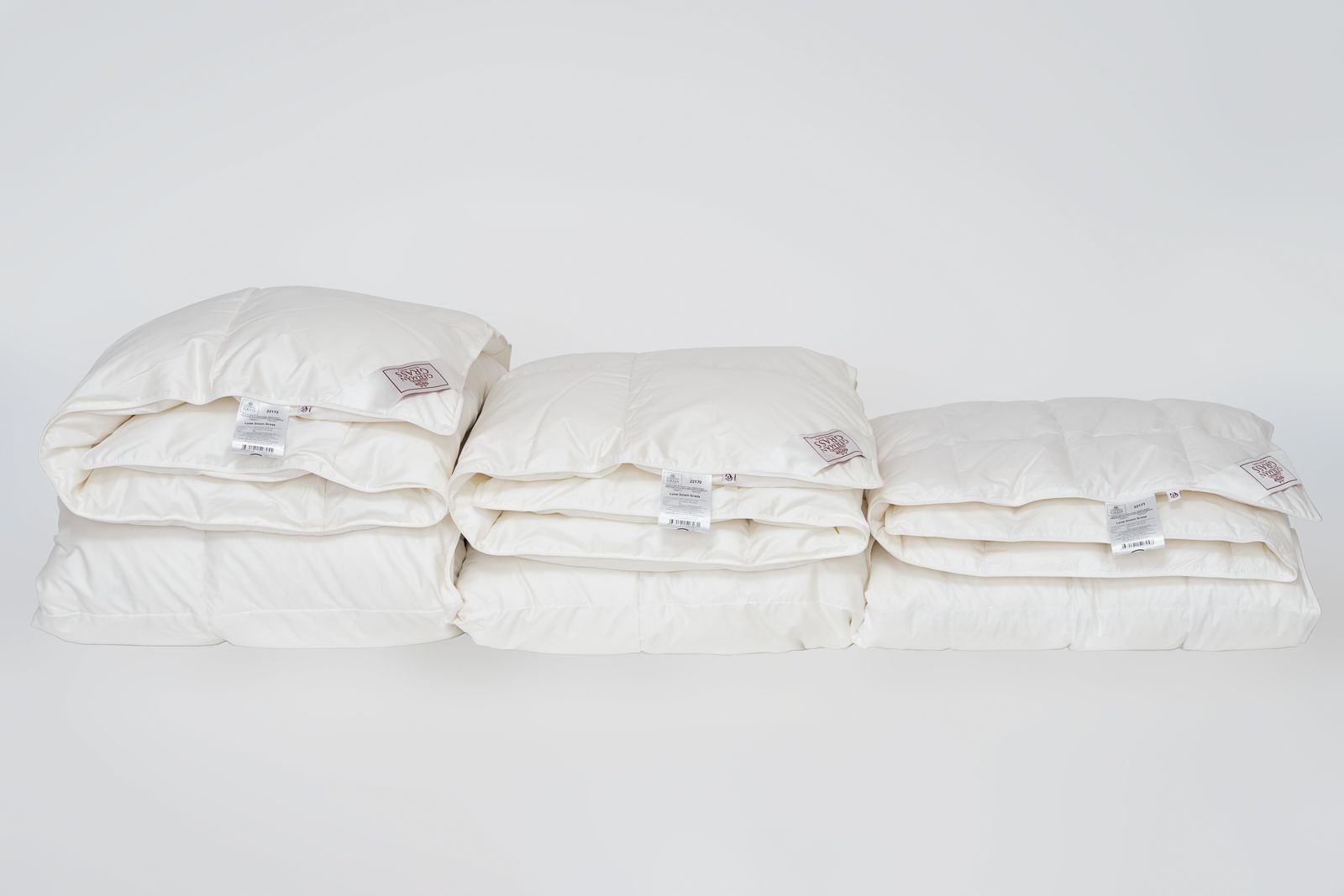 Благородный блеск гладкого сатина цвета экрю в сочетании с превосходным гусиным пухом превращают постельные принадлежности в настоящий предмет роскоши. Очищенный отборный гусиный пух категории “Экстра” с высоким коэффициентом упругости (Fill Power 750 ед) придает подушкам превосходные ортопедические свойства, мягко разгружая и поддерживая шею во время сна. Кассетные одеяла ручной работы, состоящие из отдельных box-кассет, распределяют пух равномерно и делают одеяла легкими и воздушными, но невероятно теплыми. Стирка при температуре до 30°С.
