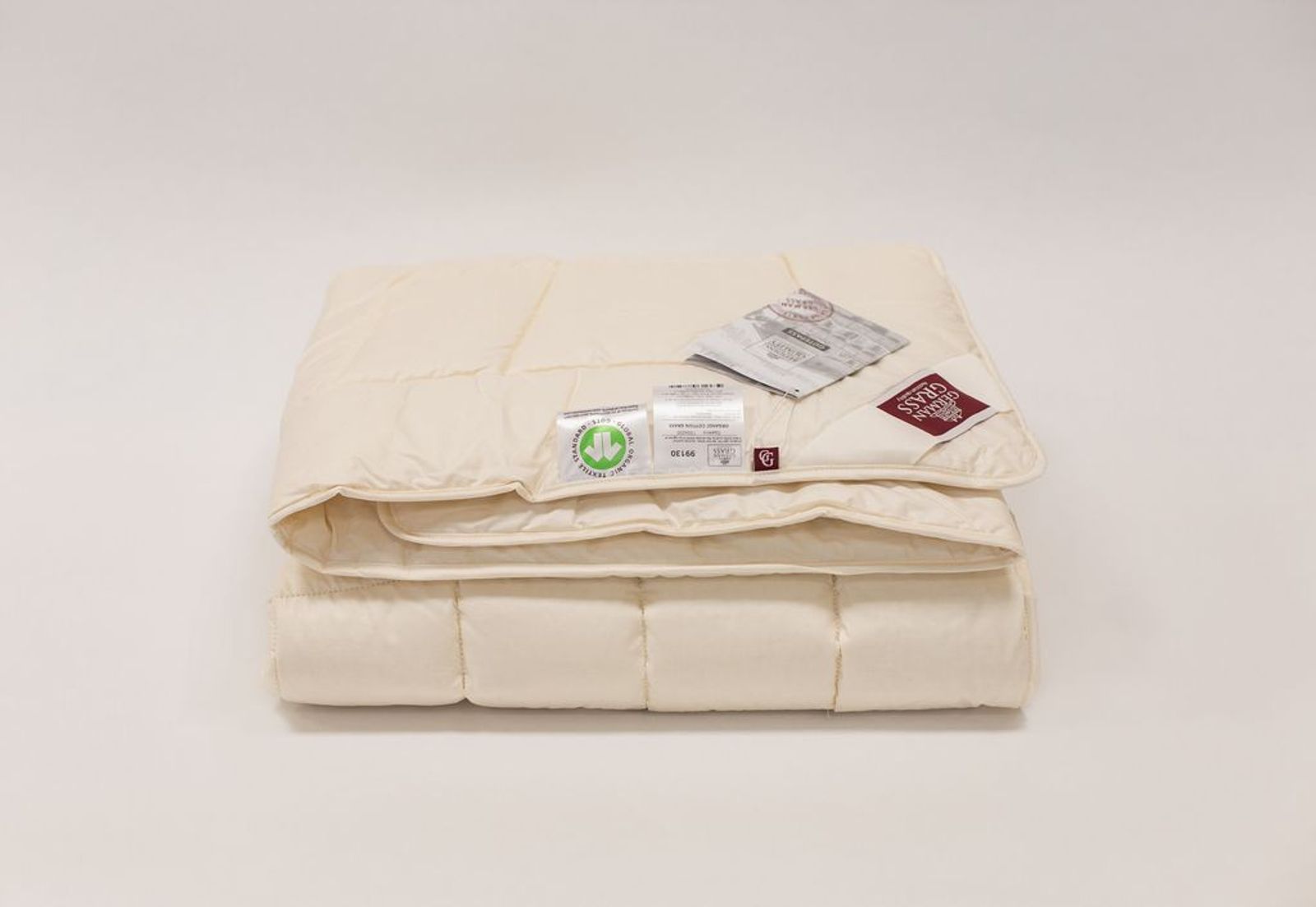 Основной наполнитель в коллекции – легкий и воздушный эко-наполнитель, созданный на основе чистого хлопка с добавлением волокон льна. Натуральные волокна обеспечивают великолепную циркуляцию воздуха и придают изделиям антибактериальный эффект; обладают антистатичными, гипоаллергенными и влагоотводящими свойствами. Тончайший батист имеет сертификат GOTS, свидетельствующий о том, что сырье для его создания выращено в контролируемом биологическом хозяйстве, без использования химических добавок и соответствует строгим экологическим критериям. Ткань дополнительно прошла финишную обработку SanProCare® Sensitive и отмечена знаком «Bramscher Tuch», что является безусловным знаком качества от специалистов из города Бра́мше в Германии.В коллекции представлены всесезонные и легкие модели, что позволит подобрать идеальный продукт, подходящий вашим индивидуальным запросам. Стирка при температуре до 40°С.