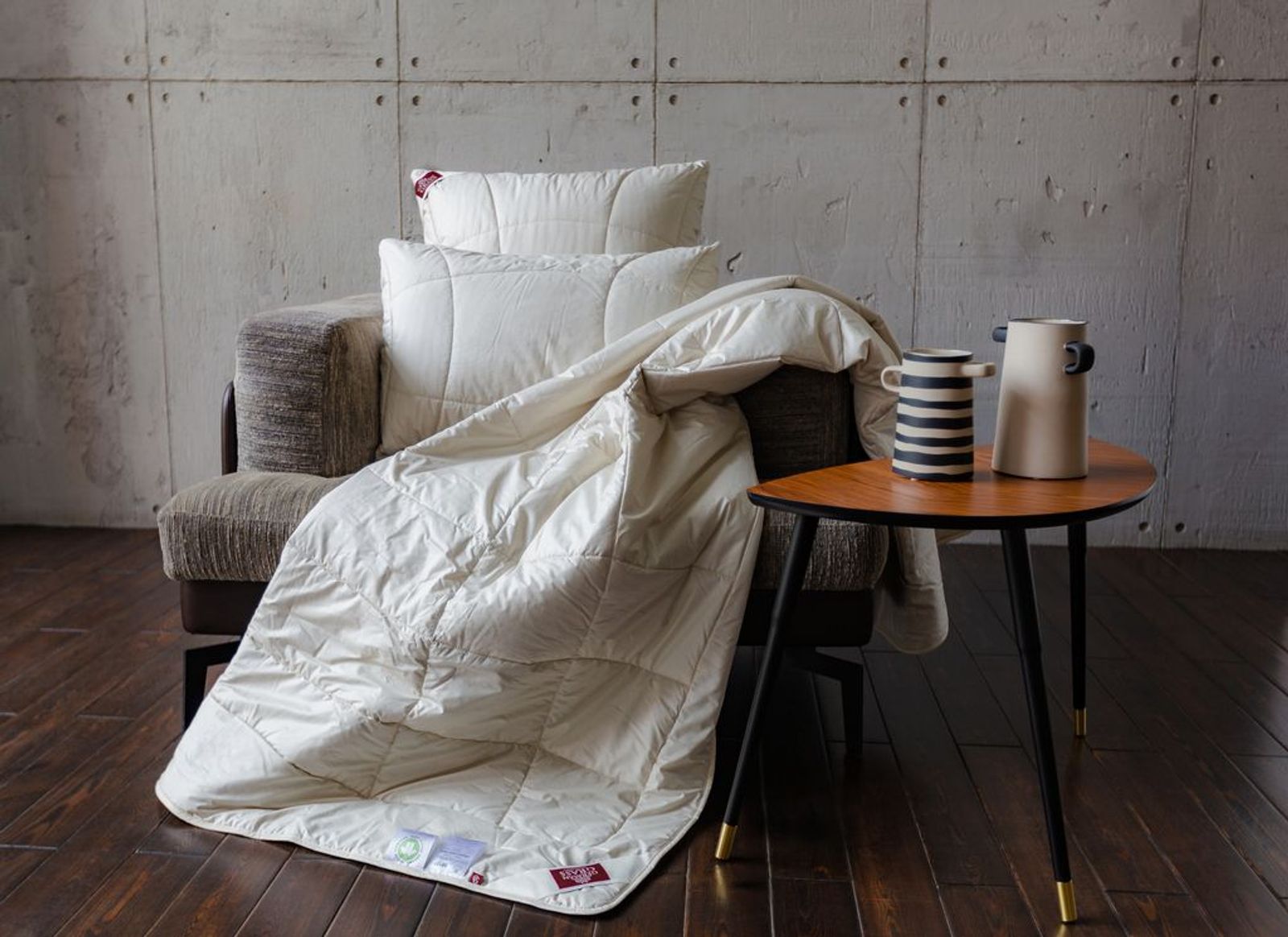 Основной наполнитель в коллекции – легкий и воздушный эко-наполнитель, созданный на основе технической конопли с добавлением волокон льна. Натуральный наполнитель обеспечивает великолепную циркуляцию воздуха и придает изделиям антибактериальный эффект; обладает антистатичными, гипоаллергенными и влагоотводящими свойствами. Тончайший батист имеет сертификат GOTS, свидетельствующий о том, что сырье для его создания выращено в контролируемом биологическом хозяйстве, без использования химических добавок и соответствует строгим экологическим критериям. Ткань дополнительно прошла финишную обработку SanProCare® Sensitive и отмечена знаком «Bramscher Tuch», что является безусловным знаком качества от специалистов из города Бра́мше в Германии.В коллекции представлены всесезонные и легкие модели, что позволит подобрать идеальный продукт, подходящий вашим индивидуальным запросам. Стирка при температуре до 40С°.