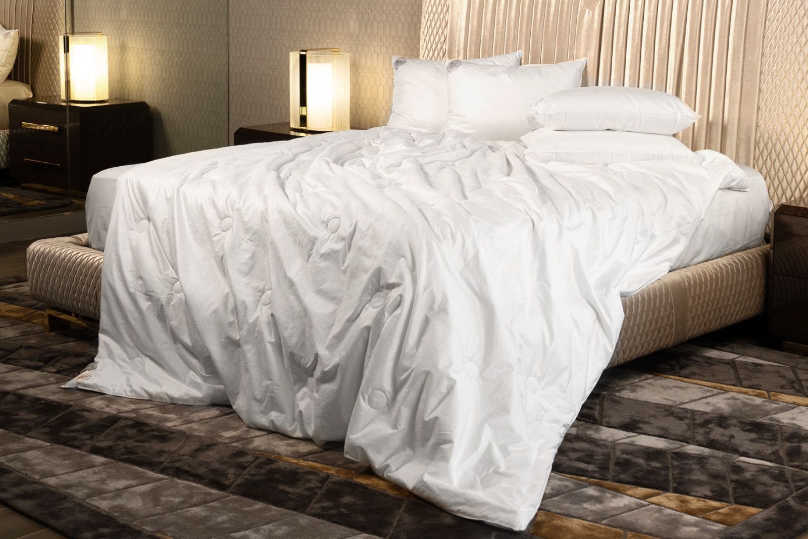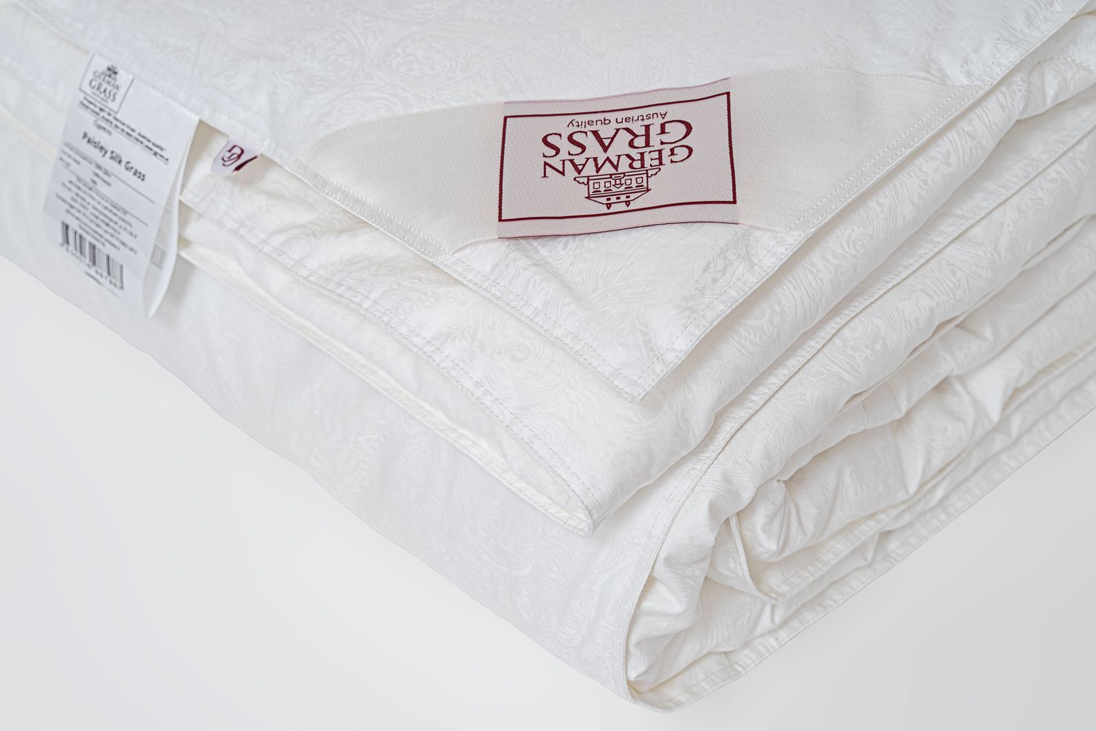 Paisley Silk Grass – это лимитированная коллекция подушек и одеял, изготовленных вручную из натурального шелкового наполнителя высшего качества Mulberry. Ткань изделий – жаккардовый сатин высокой плотности цвета белого жемчуга из 100% Egyptian COTTON. Ручной процесс изготовления позволяет тщательно контролировать качество производства на каждом этапе, что вкупе с прекрасными материалами определяет высокий уровень изделий. Мы не рекомендуем стирать одеяла и подушки, допускается только сухая чистка изделий.