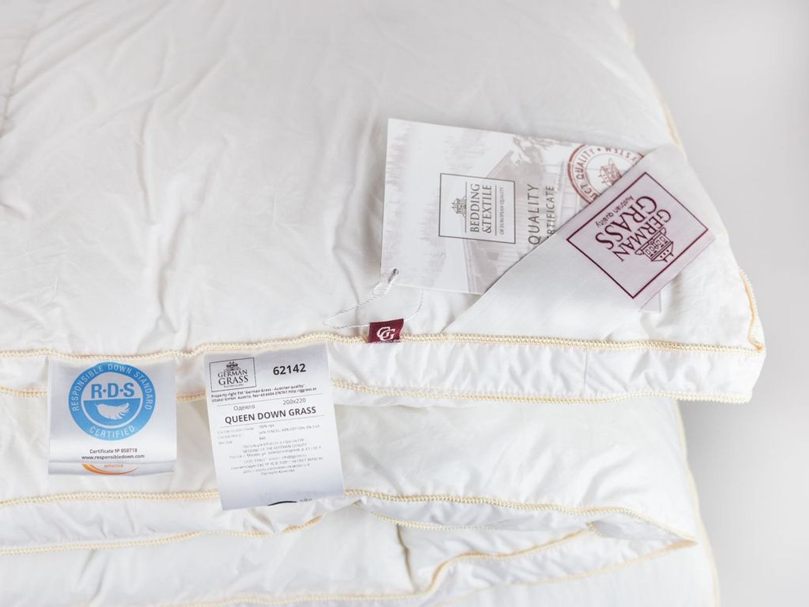 Ткани, отмеченные маркировкой «Bramscher Tuch», – это безусловный знак качества и великолепный результат работы ткачей из города Бра́мше в Германии. Высочайшей оценки требует буквально все: от высококачественного сырья и тончайшей пряжи до эксклюзивной отделки тканей. Объемные и высокие подушки с бортиком созданы для тех, кому по душе европейское понимание роскоши: сочетание бархатистых немецких тканей повышенной плотности и натурального гусиного пуха категории «Экстра». Строение подушки обеспечивает дополнительную поддержку головы и способствует расслаблению шеи во время сна. Кассетные одеяла ручной работы сконструированы так, чтобы пух равномерно распределялся внутри изделия, добавляя изделию невесомости. Каждая кассета 30х30 см наполнена отборным белым пухом вручную, а высота перегородки 3 см позволяет наполнителю свободно располагаться внутри, увеличить циркуляцию воздуха и повысить согревающие свойства. Теплые одеяла обеспечат комфортный микроклимат даже в самое холодное время года. Для обеспечения особых гигиенических свойств, изделия прошли обработку методом озонирования Ozone Pure 360 Grass. Рекомендована стирка при температуре до 30°С.