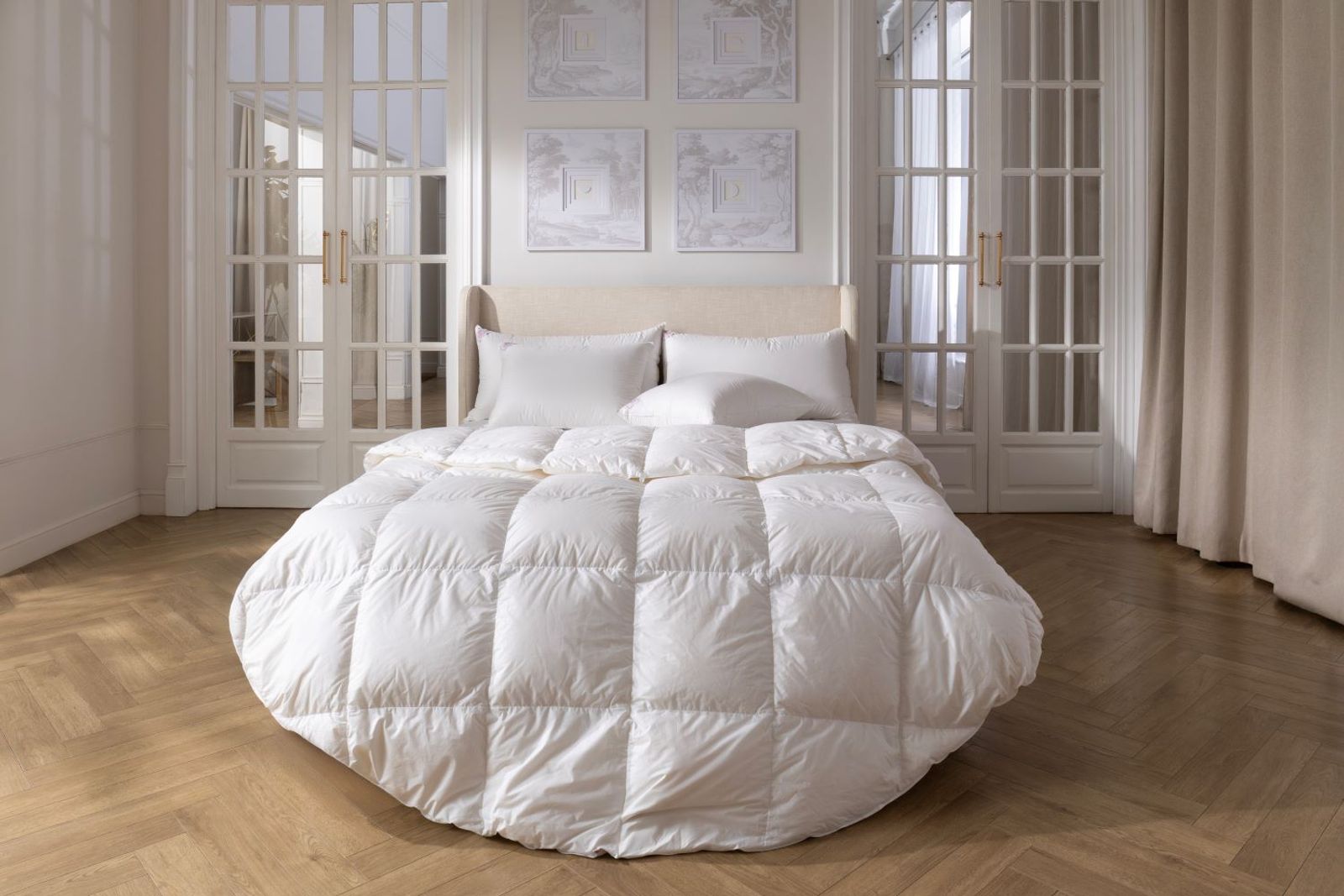 Город Бра́мше в Германии и разработанные ткачами этого поселения способы финишной обработки тканей известны производителям во всем мире уже второе столетие и поэтому маркировка «Bramscher Tuch» является своеобразным знаком качества в индустрии. Ей отмечены все изделия коллекции Royal Down Grass, указывая на исключительные качества. Супертонкий мако-батист (Mako-ultra fine batiste), из 100% египетского хлопка, прошедший финишную обработку SanProCare® Sensitive, позволяет ткани достичь состояния «пуховой мягкости». Ткани сертифицированы по OEKO-TEX® Standard 100 – стандарту безопасности текстильных изделий. Наполнителем для эксклюзивной коллекции служит гусиный пух категории “Экстра” повышенной упругости (Fill Power 850 ед). При малом весе он обладает особенной пушистостью и лучшей теплоизоляционной способностью. Стирка при температуре до 30°С.