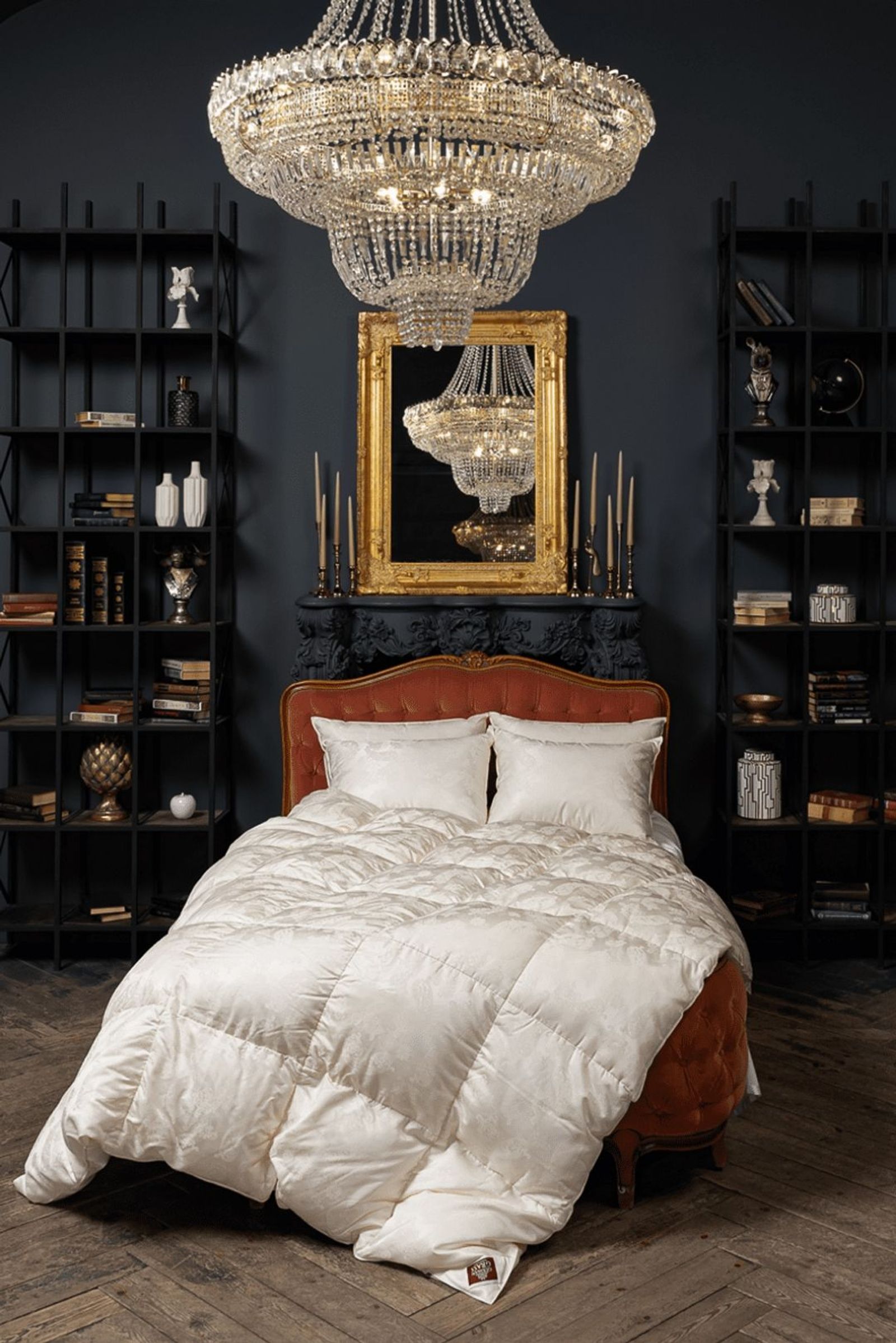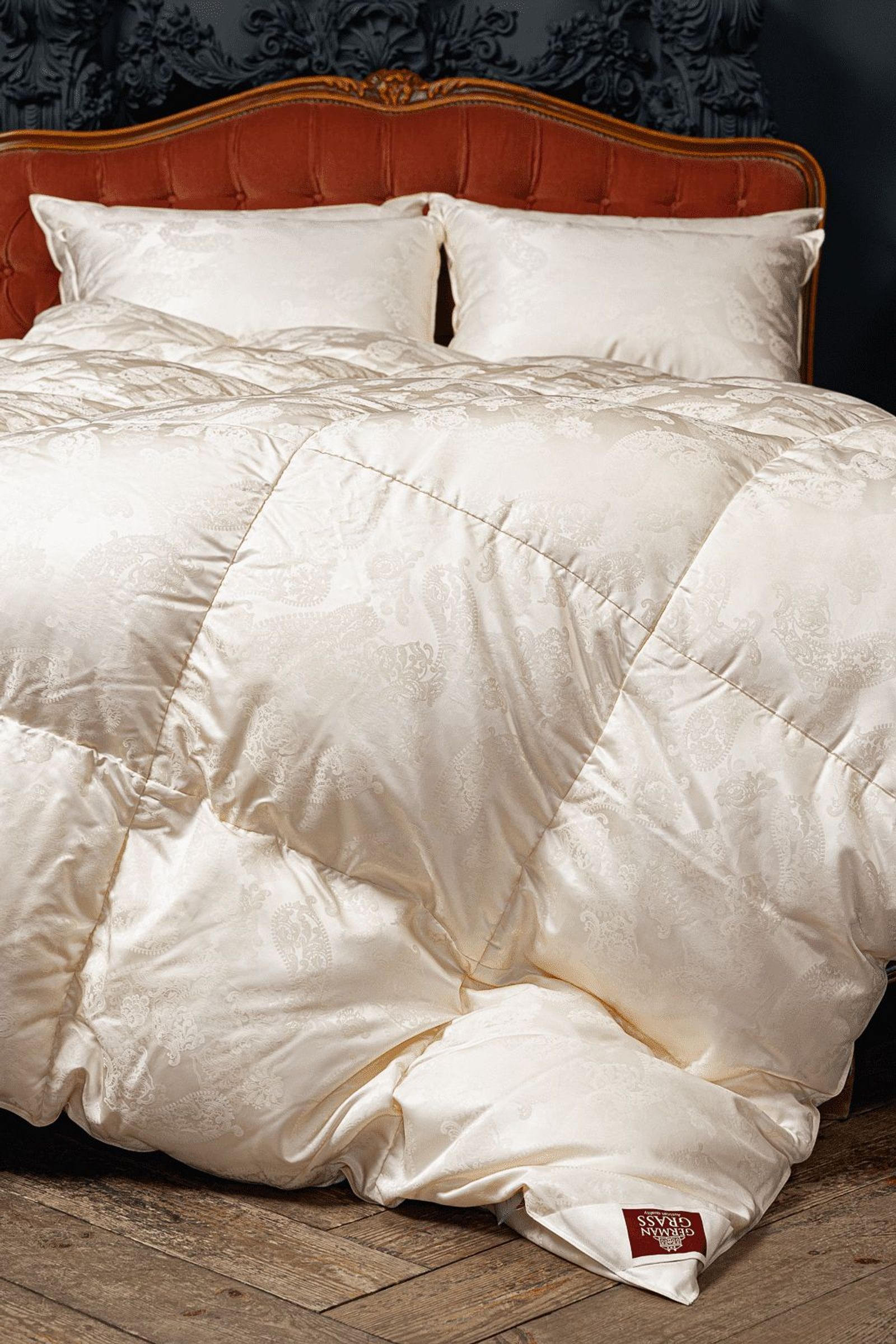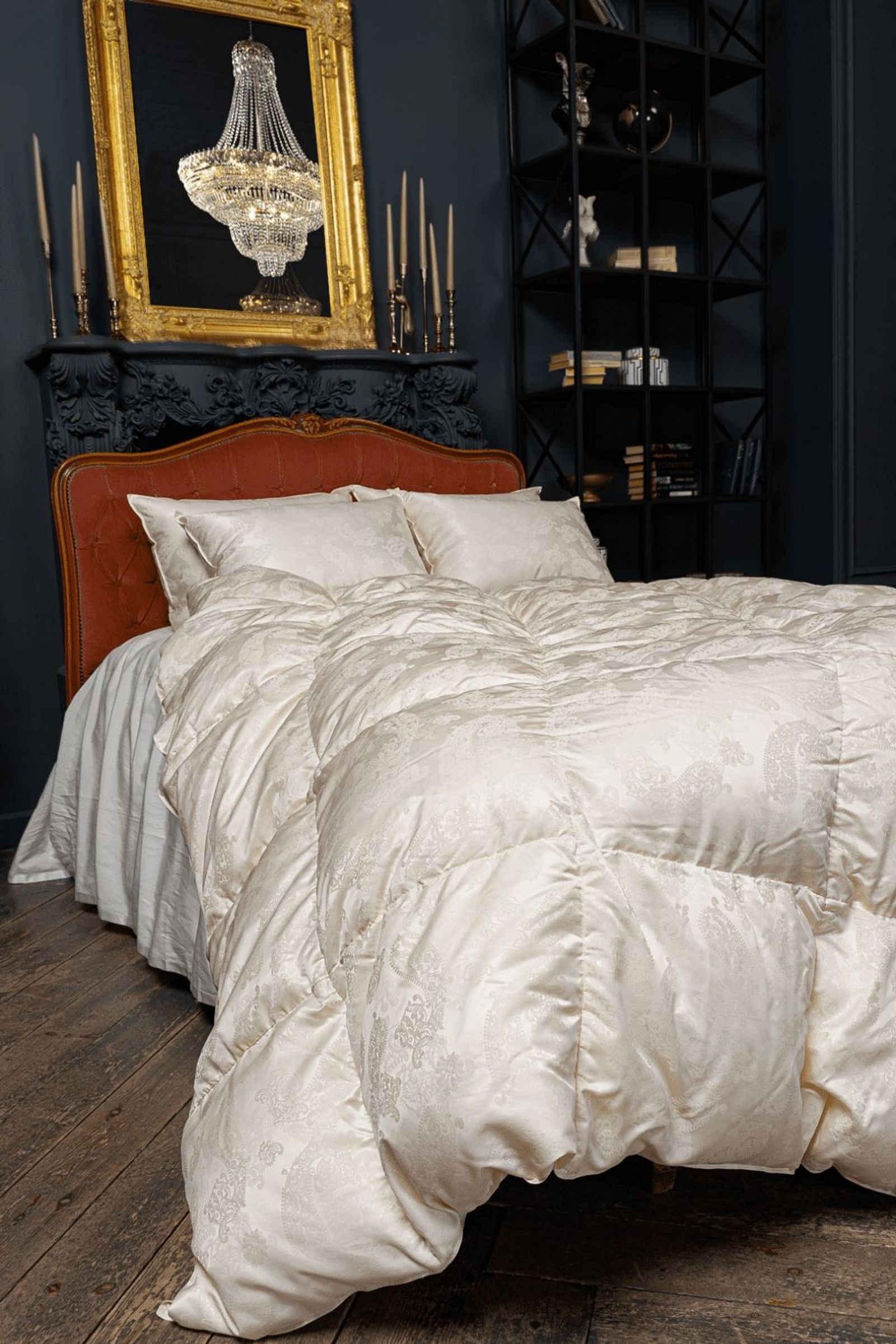 Сочетание сливочного пуходержащего жаккардового сатина PAISLEY из натурального 100% шелка и первоклассного пухового наполнителя категории “Экстра” повышенной упругости (Fill Power не менее 850 ед.) – это совершенный эксклюзив в мире постельных принадлежностей. Высокая плотность ткани и двойная отстрочка не позволят пуху мигрировать из изделия и не пропустят частички пыли внутрь. Эксклюзивные ткани создаются на единственном производстве в Европе – старейшей немецкой ткацкой фабрике – в лимитированном количестве. Для того, чтобы ткать шелковый пуходержащий жаккард с узором, необходимо обладать высочайшим уровнем мастерства. Кассетные одеяла ручной работы предназначены для использования в холодное время года. Каждая кассета размером 40х40 см наполнена отборным белым пухом вручную.Для обеспечения особых гигиенических свойств, изделия прошли обработку методом озонирования Ozone Pure 360 Grass. Как и всякий эксклюзив, изделия этой коллекции требуют особого ухода при обслуживании: мы не рекомендуем их стирать, допускается только сухая чистка изделий.