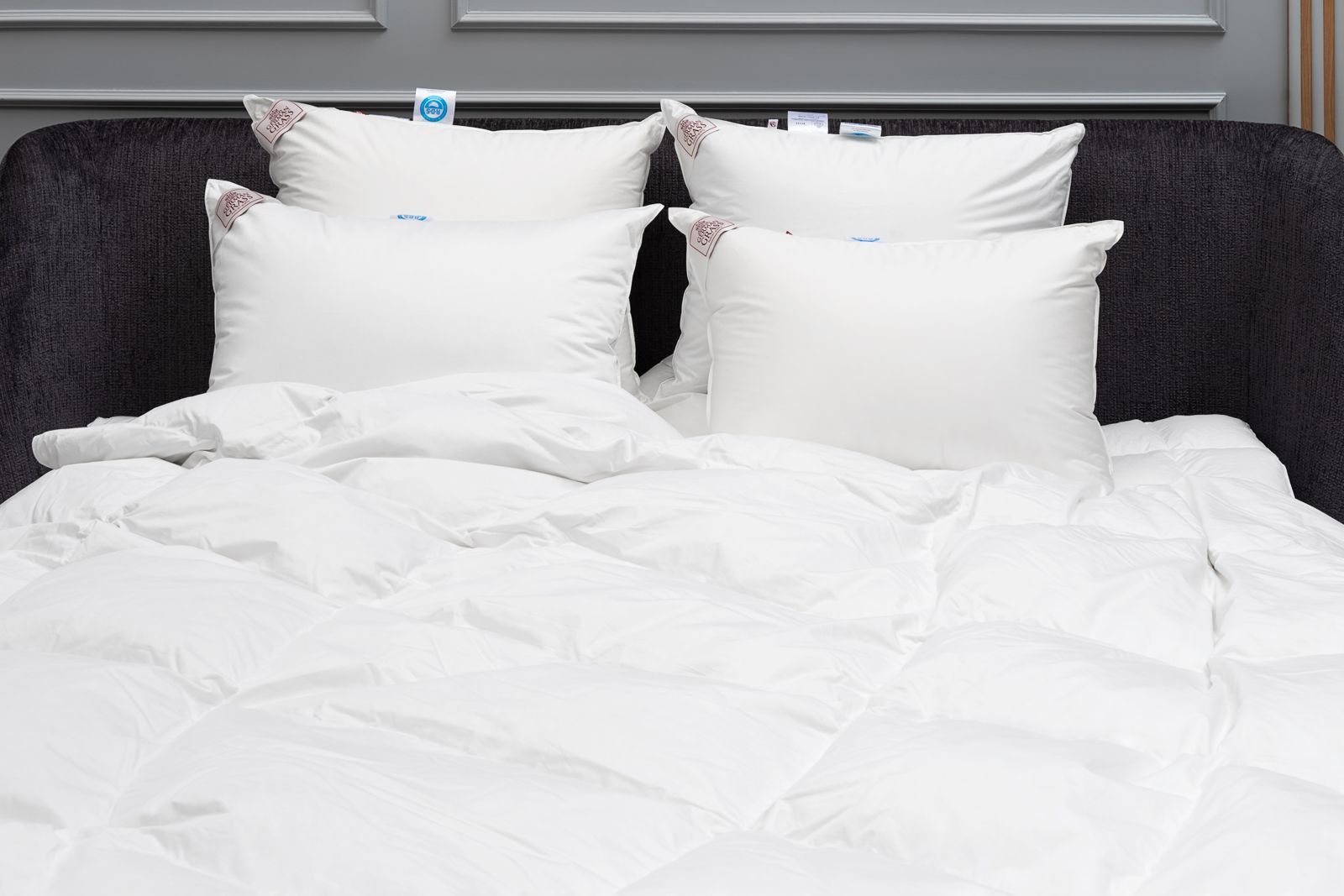 Коллекция Air Down Grass полностью соответствует своему названию: необыкновенная легкость и воздушность изделий обусловлена сочетанием тончайшего хлопкового батиста (Fine batiste) высокой плотности и отборного гусиного пуха. Одеяла изготовлены по технологии BOX- QUILTING ®, которая позволяет создавать доступные по цене стеганные пуховые одеяла, которые по многим параметрам не уступают кассетным. Метод минимизирует миграцию наполнителя наружу, позволяя одеялу оставаться пышным весь срок эксплуатации и даже продлевает его, снижая износ ткани чехла. Эргономичная стежка “КОКОН” повторяет контуры тела человека и способствует равномерному прилеганию одеяла. Подушки невысокие, мягко поддерживают и разгружают шею во время сна. Подушки допускается стирать при температуре до 30°С. Для одеял рекомендована только сухая чистка.