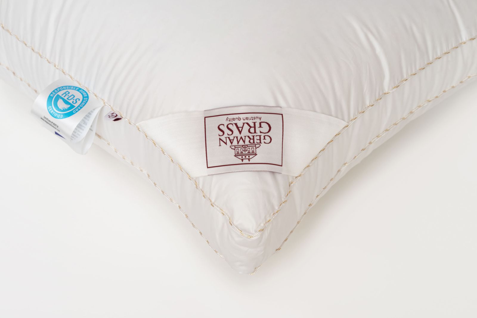 Немецкий хлопковый сатин высочайшей плотности соткан из тончайших нитей (Premium Satin – Nе 120/120 493 ТС) и прошел финишную обработку SanProCare® Sensitive, обеспечивающую усиленную гигроскопичность и придающую ей «пуховую мягкость». Особо тонкий, мягкий и «нешуршащий» чехол обладает повышенной износостойкостью и предотвращает проникновение пылевых клещей внутрь изделий. Наполнителем служит пух высочайшего качества, отобранный на гусиных фермах Сибири, которая, по утверждению биологов, является зоной проживания гусей, носящих пух максимально больших размеров, что, безусловно, влияет на пуховую массу положительно и наполнитель имеет повышенный коэффициент упругости (Fill Power), достигающий значений в 850 ед.