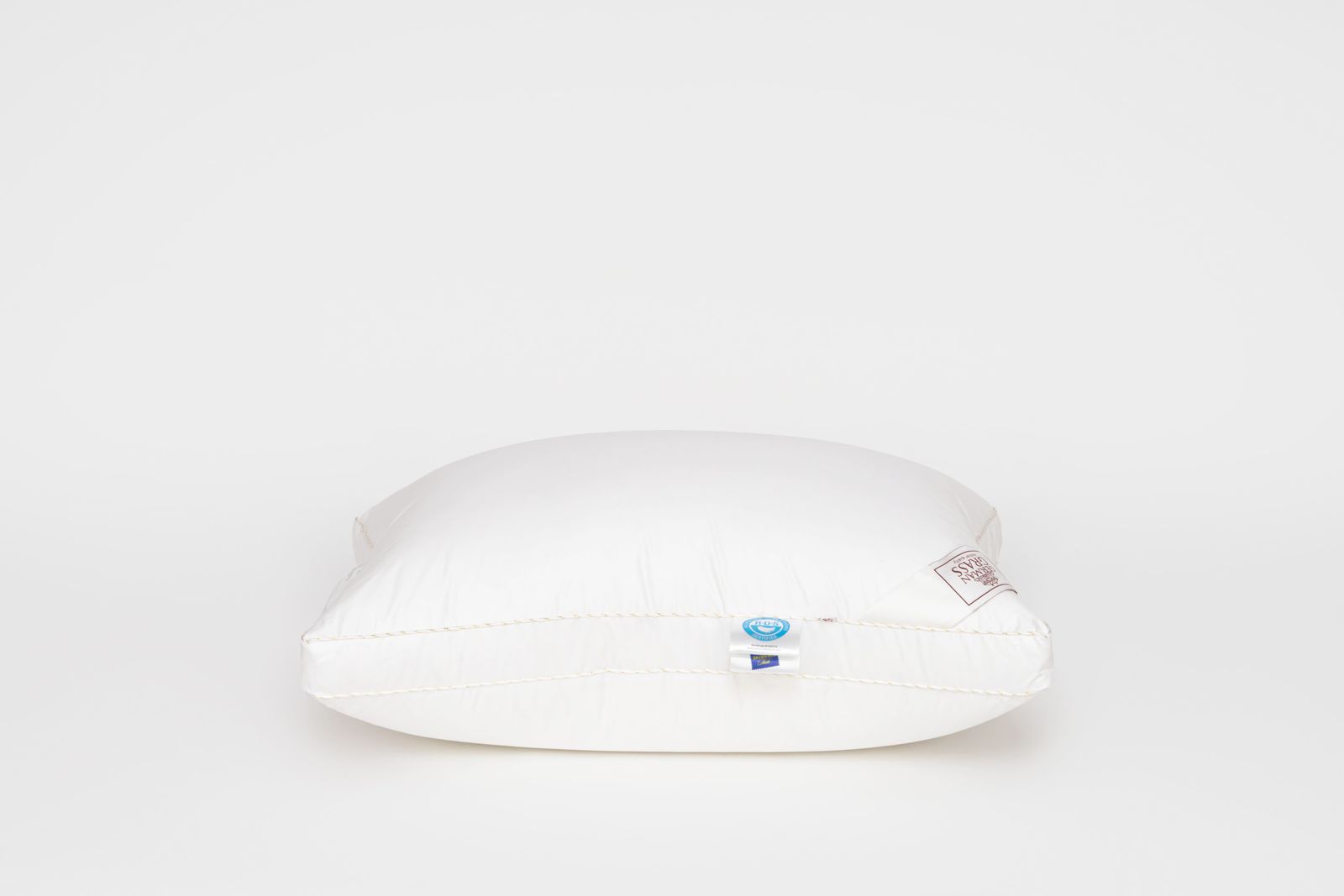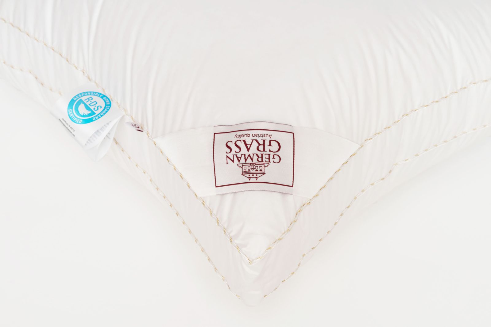 Немецкий хлопковый сатин высочайшей плотности соткан из тончайших нитей (Premium Satin – Nе 120/120 493 ТС) и прошел финишную обработку SanProCare® Sensitive, обеспечивающую усиленную гигроскопичность и придающую ей «пуховую мягкость». Особо тонкий, мягкий и «нешуршащий» чехол обладает повышенной износостойкостью и предотвращает проникновение пылевых клещей внутрь изделий. Наполнителем служит пух высочайшего качества, отобранный на гусиных фермах Сибири, которая, по утверждению биологов, является зоной проживания гусей, носящих пух максимально больших размеров, что, безусловно, влияет на пуховую массу положительно и наполнитель имеет повышенный коэффициент упругости (Fill Power), достигающий значений в 850 ед.