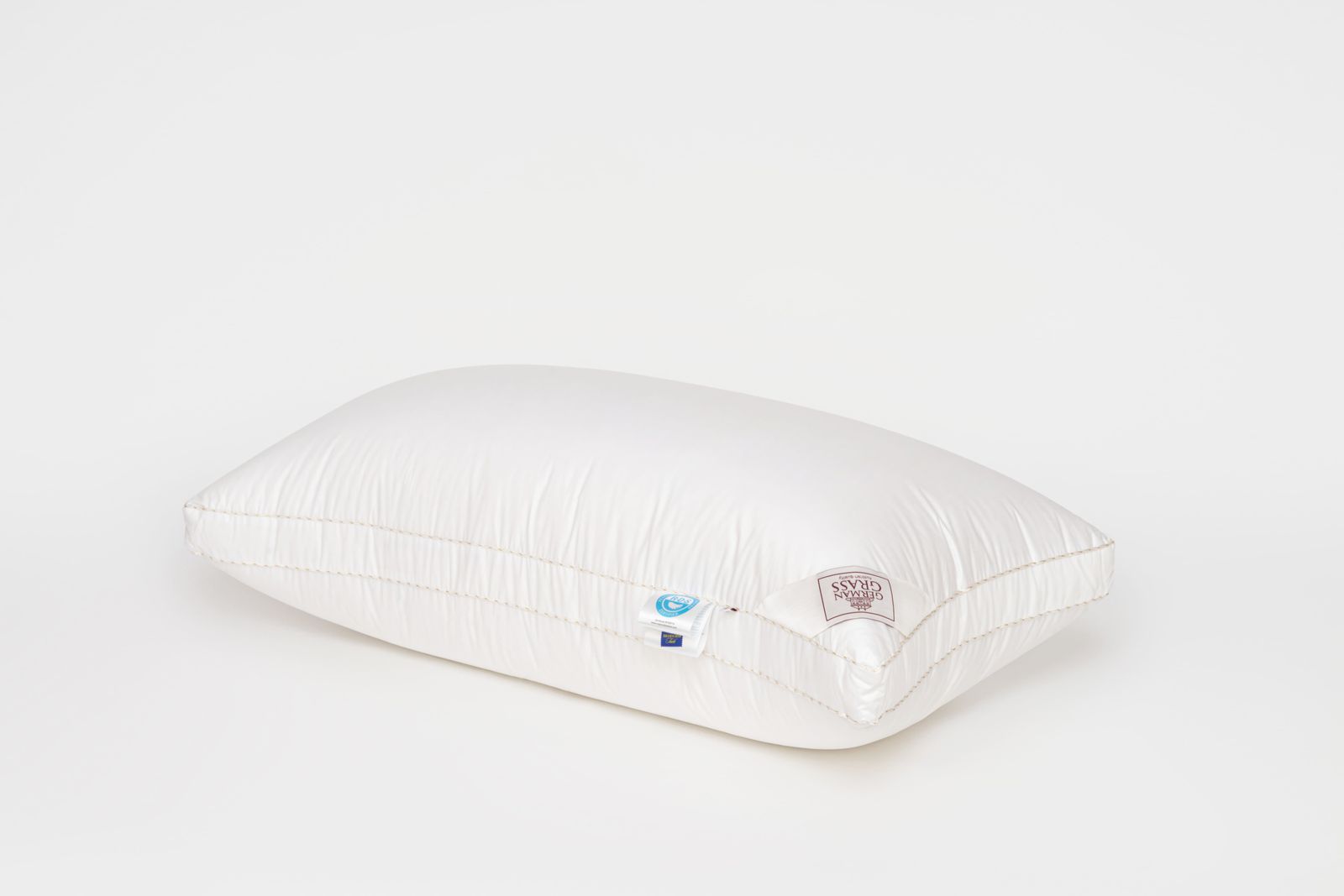 Немецкий хлопковый сатин высочайшей плотности соткан из тончайших нитей (Premium Satin – Nе 120/120 493 ТС) и прошел финишную обработку SanProCare® Sensitive, обеспечивающую усиленную гигроскопичность и придающую ей «пуховую мягкость». Особо тонкий, мягкий и «нешуршащий» чехол обладает повышенной износостойкостью и предотвращает проникновение пылевых клещей внутрь изделий. Наполнителем служит пух высочайшего качества, отобранный на гусиных фермах Сибири, которая, по утверждению биологов, является зоной проживания гусей, носящих пух максимально больших размеров, что, безусловно, влияет на пуховую массу положительно и наполнитель имеет повышенный коэффициент упругости (Fill Power), достигающий значений в 850 ед.