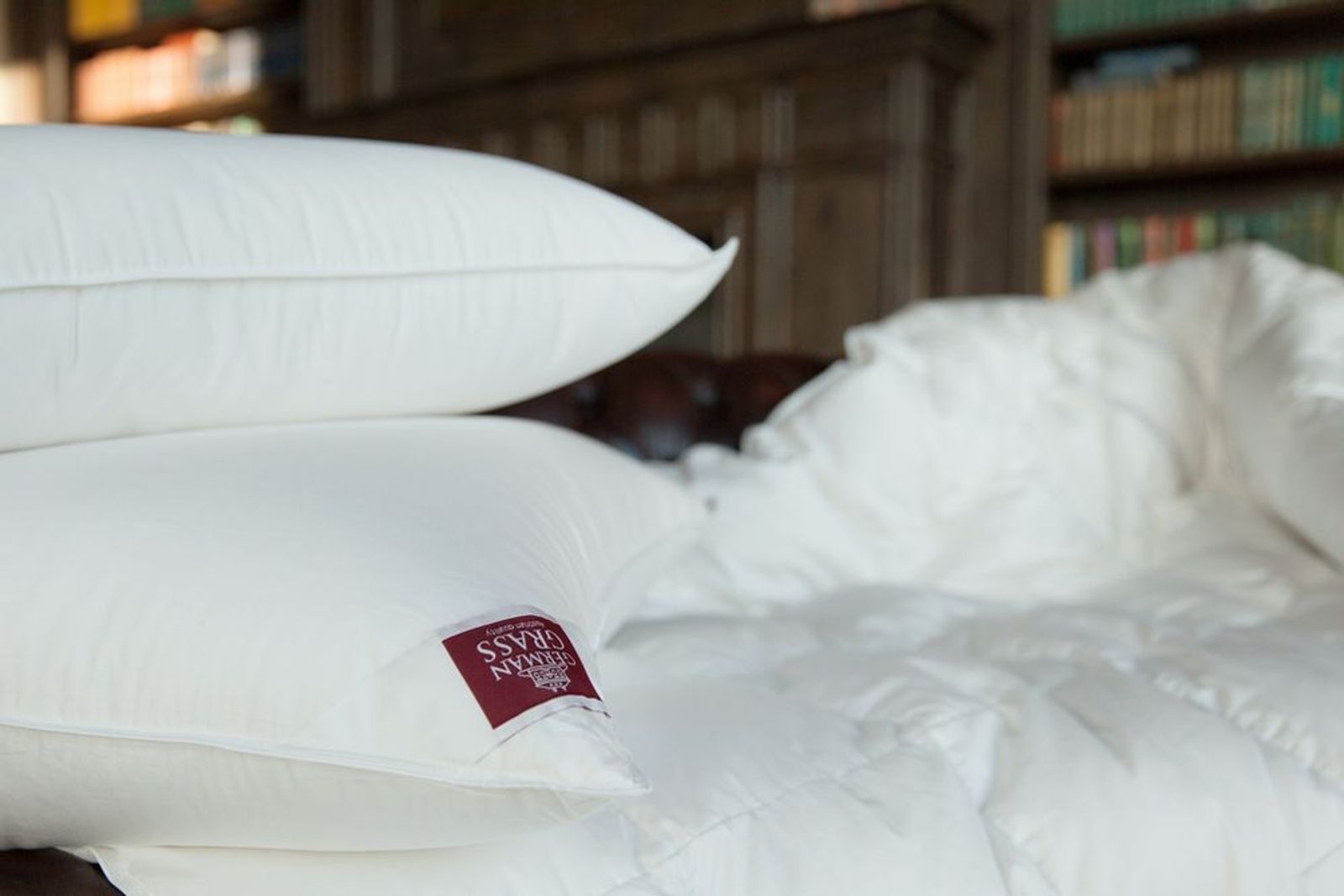Благородный блеск гладкого сатина цвета экрю в сочетании с превосходным гусиным пухом превращают постельные принадлежности в настоящий предмет роскоши. Очищенный отборный гусиный пух категории “Экстра” с высоким коэффициентом упругости (Fill Power 750 ед) придает подушкам превосходные ортопедические свойства, мягко разгружая и поддерживая шею во время сна. Кассетные одеяла ручной работы, состоящие из отдельных box-кассет, распределяют пух равномерно и делают одеяла легкими и воздушными, но невероятно теплыми. Стирка при температуре до 30°С.