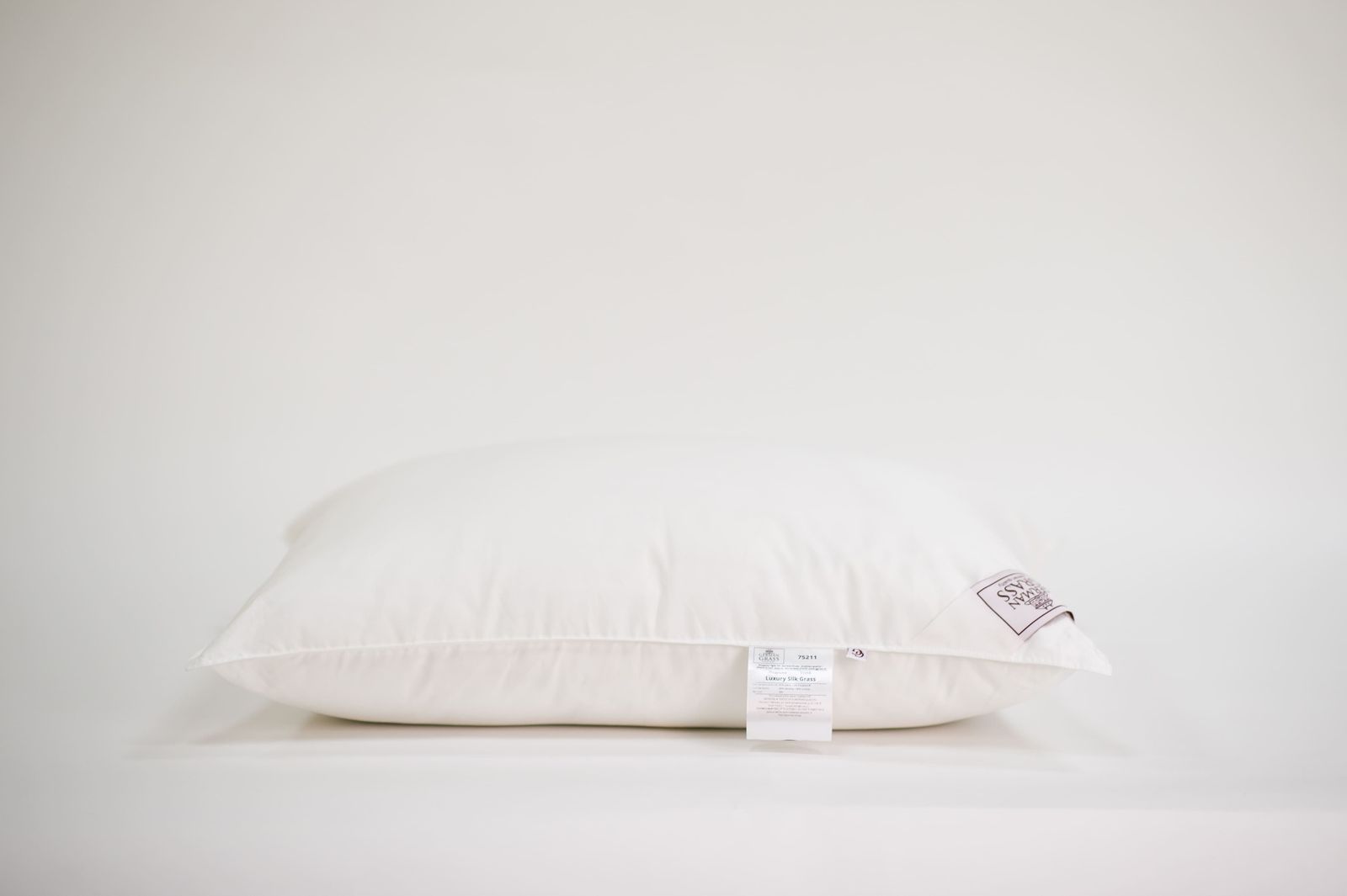 Luxury Silk Grass – это шелковая нежность и изящество. Нежная и мягкая ткань Sateen Supersoft искусно подчеркивает шелковистым глянцем всю прелесть обольстительной коллекции. Эксклюзивная «точечная» стежка одеял подчеркивает высокое качество длинного и тонкого природного шелкового волокна Mulberry. Классические подушки с двусоставным внутренним наполнителем состоят на 85% из натуральной шелковой оболочки и на 15% из инновационного синтетического 4-L волокна, 100% Polyester® (предназначенного для придания несминаемого объема). Рекомендована только сухая чистка.