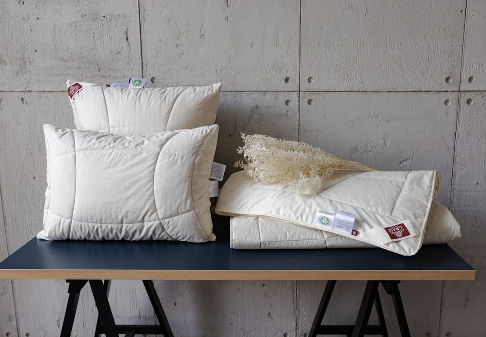 Основной наполнитель в коллекции – легкий и воздушный эко-наполнитель, созданный на основе технической конопли с добавлением волокон льна. Натуральный наполнитель обеспечивает великолепную циркуляцию воздуха и придает изделиям антибактериальный эффект; обладает антистатичными, гипоаллергенными и влагоотводящими свойствами. Тончайший батист имеет сертификат GOTS, свидетельствующий о том, что сырье для его создания выращено в контролируемом биологическом хозяйстве, без использования химических добавок и соответствует строгим экологическим критериям. Ткань дополнительно прошла финишную обработку SanProCare® Sensitive и отмечена знаком «Bramscher Tuch», что является безусловным знаком качества от специалистов из города Бра́мше в Германии.В коллекции представлены всесезонные и легкие модели, что позволит подобрать идеальный продукт, подходящий вашим индивидуальным запросам. Стирка при температуре до 40С°.