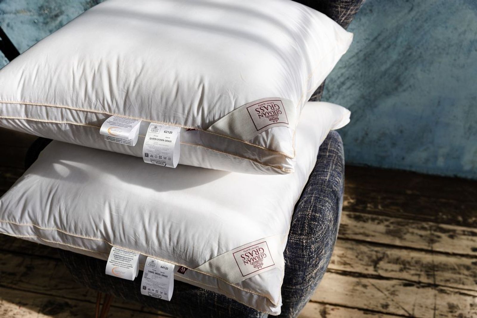 Ткани, отмеченные маркировкой «Bramscher Tuch», – это безусловный знак качества и великолепный результат работы ткачей из города Бра́мше в Германии. Высочайшей оценки требует буквально все: от высококачественного сырья и тончайшей пряжи до эксклюзивной отделки тканей. Объемные и высокие подушки с бортиком созданы для тех, кому по душе европейское понимание роскоши: сочетание бархатистых немецких тканей повышенной плотности и натурального гусиного пуха категории «Экстра». Строение подушки обеспечивает дополнительную поддержку головы и способствует расслаблению шеи во время сна. Кассетные одеяла ручной работы сконструированы так, чтобы пух равномерно распределялся внутри изделия, добавляя изделию невесомости. Каждая кассета 30х30 см наполнена отборным белым пухом вручную, а высота перегородки 3 см позволяет наполнителю свободно располагаться внутри, увеличить циркуляцию воздуха и повысить согревающие свойства. Теплые одеяла обеспечат комфортный микроклимат даже в самое холодное время года. Для обеспечения особых гигиенических свойств, изделия прошли обработку методом озонирования Ozone Pure 360 Grass. Рекомендована стирка при температуре до 30°С.