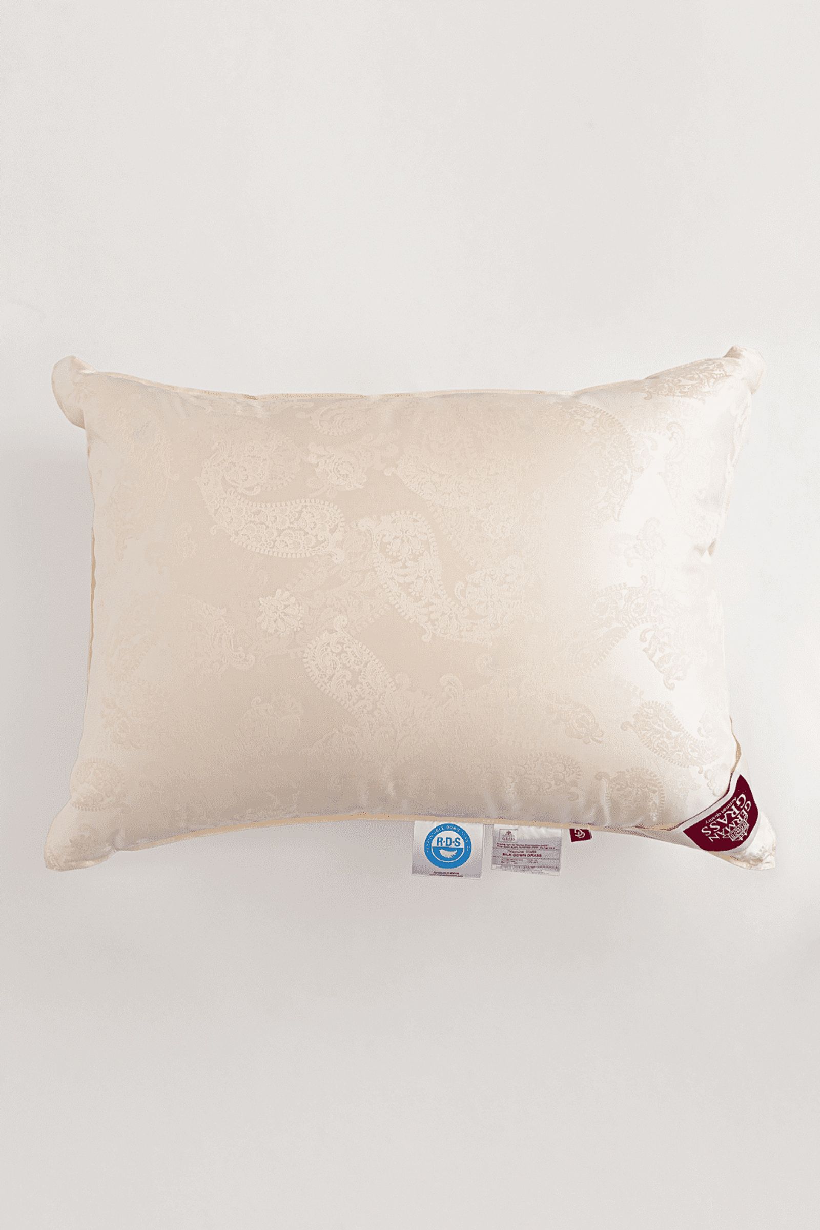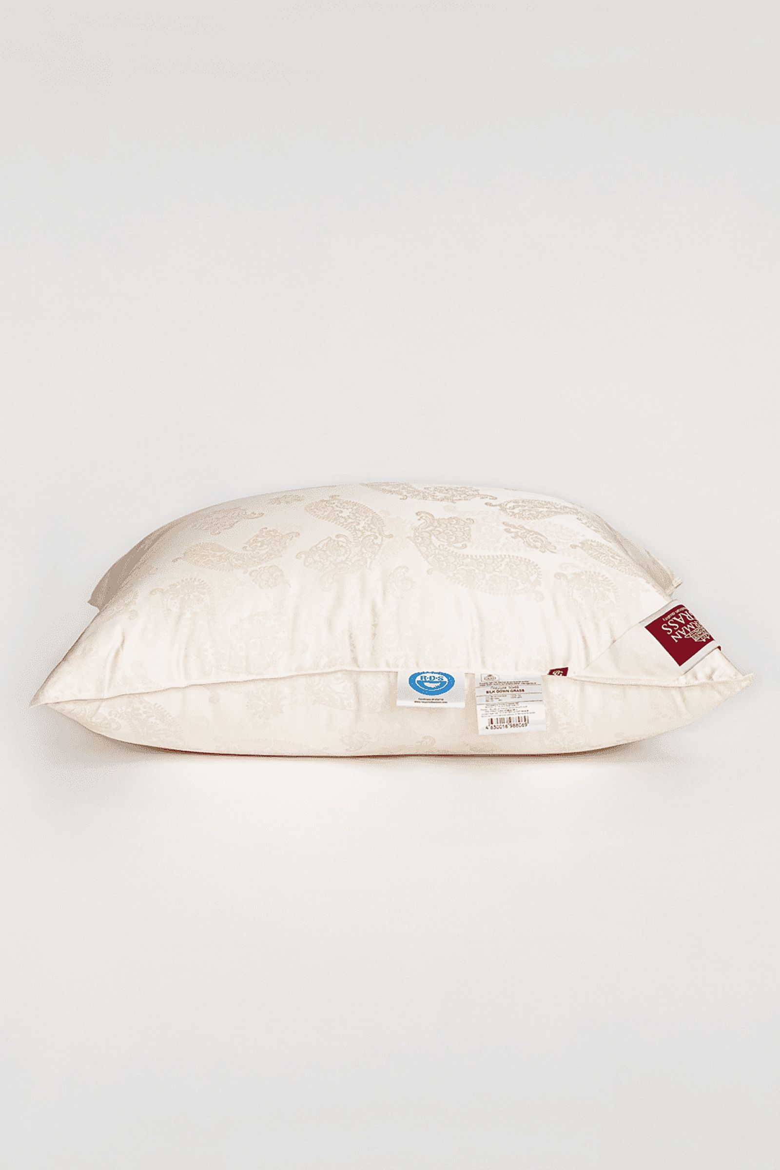 Сочетание сливочного пуходержащего жаккардового сатина PAISLEY из натурального 100% шелка и первоклассного пухового наполнителя категории “Экстра” повышенной упругости (Fill Power не менее 850 ед.) – это совершенный эксклюзив в мире постельных принадлежностей. Высокая плотность ткани и двойная отстрочка не позволят пуху мигрировать из изделия и не пропустят частички пыли внутрь. Эксклюзивные ткани создаются на единственном производстве в Европе – старейшей немецкой ткацкой фабрике – в лимитированном количестве. Для того, чтобы ткать шелковый пуходержащий жаккард с узором, необходимо обладать высочайшим уровнем мастерства. Пуховые подушки равномерно распределяют давление по площади изделия и правильно поддерживают голову во время сна не давая ей “утопать”. Как и всякий эксклюзив, изделия этой коллекции требуют особого ухода при обслуживании: мы не рекомендуем их стирать, допускается только сухая чистка изделий.