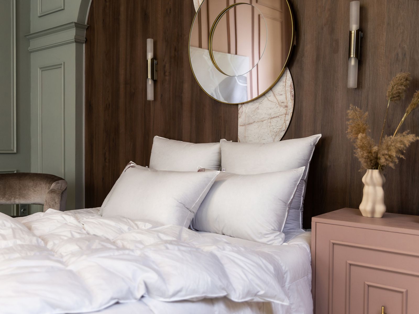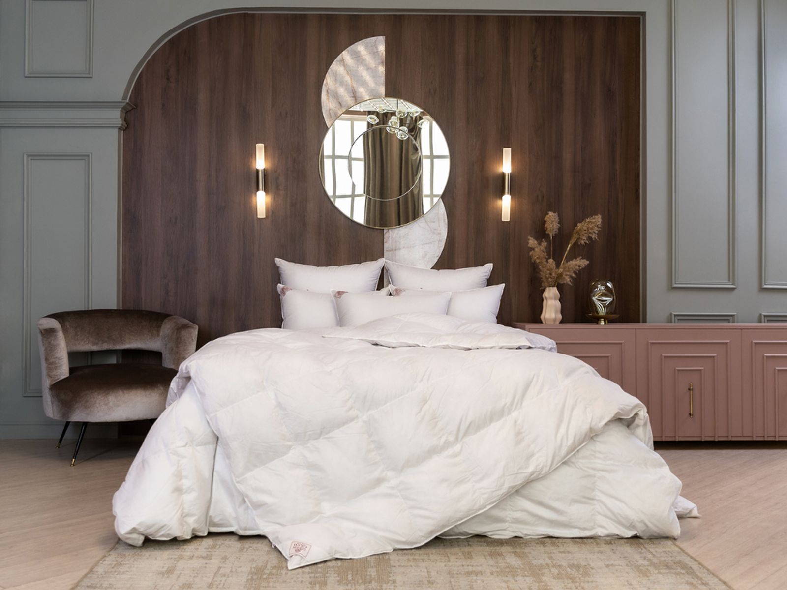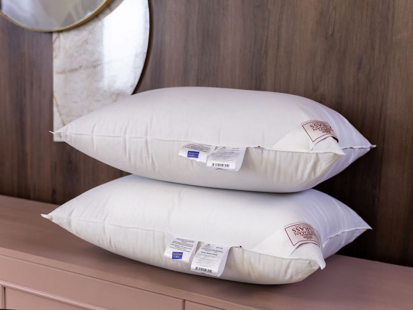 Подушки коллекции GRASS SILVER DOWN LINE наполнены пуховым наполнителем первой категории: серым пухом гусей Тулузской породы с добавлением мелкого перышка, что позволяет получить объём и упругость. Чехлы выполнены из немецкой ткани, прошедшей финишную обработку SanProCare® Sensitive, которая позволяет материалу усиленно поглощать и отдавать влагу. Ткани сертифицированы по OEKO-TEX® Standard 100 – международному стандарту безопасности текстильных изделий. Ткани, отмеченные маркировкой «Bramscher Tuch» – это безусловный знак качества и великолепный результат работы специалистов из города Бра́мше в Германии. Высочайшей оценки требует буквально все: от высококачественного сырья и тончайшей пряжи до заключительной эксклюзивной отделки тканей. Сочетание тонкой ткани и серого пуха придают изделиям серебристый оттенок, что легло в основу названия коллекции. Рекомендована стирка при температуре до 30°С.