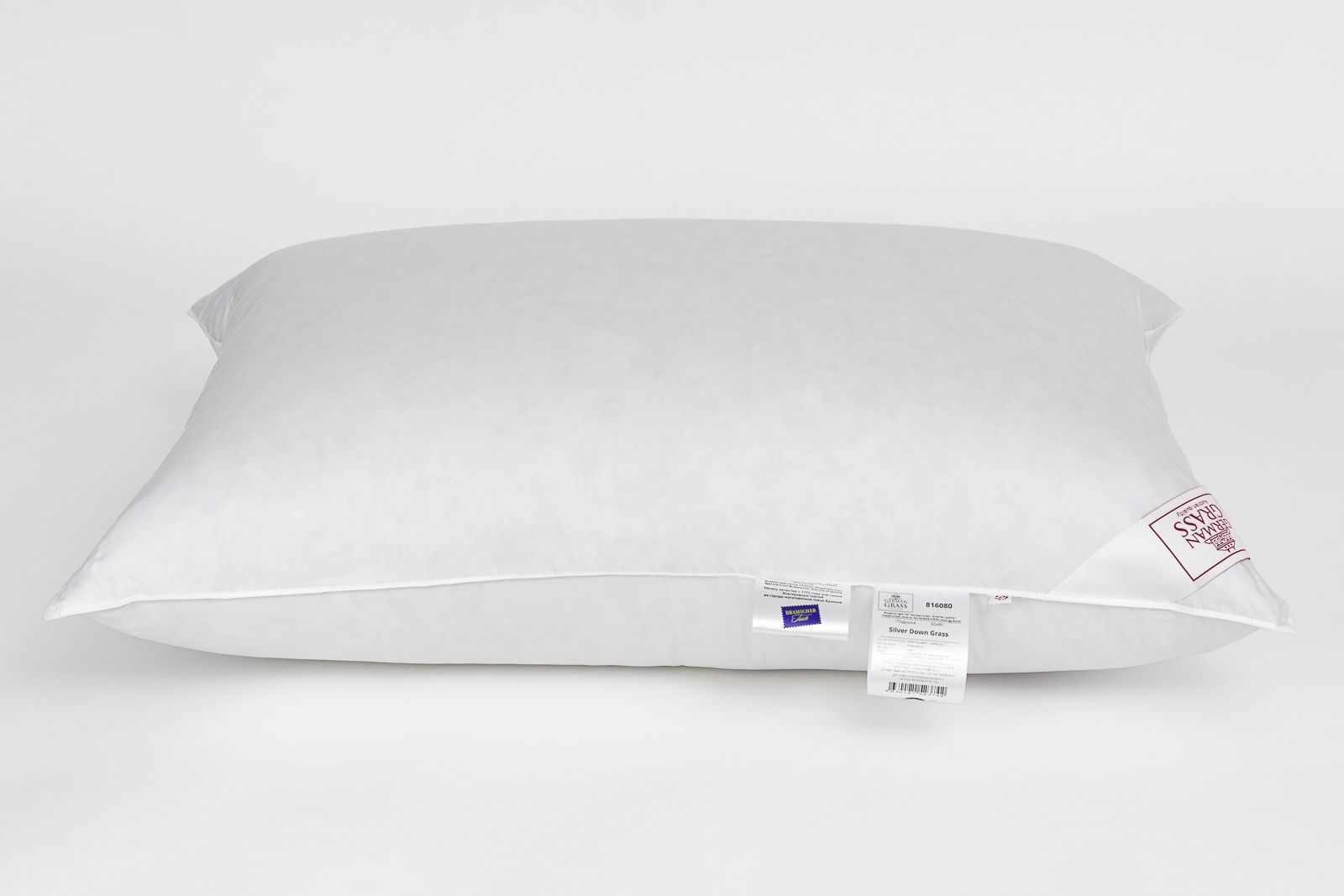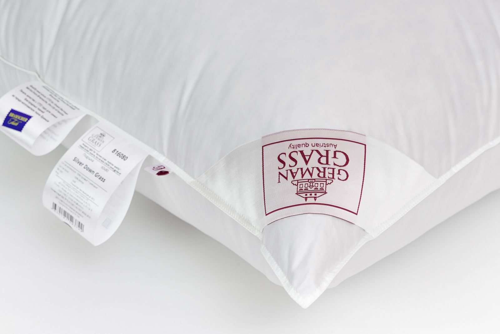 Подушки коллекции GRASS SILVER DOWN LINE наполнены пуховым наполнителем первой категории: серым пухом гусей Тулузской породы с добавлением мелкого перышка, что позволяет получить объём и упругость. Чехлы выполнены из немецкой ткани, прошедшей финишную обработку SanProCare® Sensitive, которая позволяет материалу усиленно поглощать и отдавать влагу. Ткани сертифицированы по OEKO-TEX® Standard 100 – международному стандарту безопасности текстильных изделий. Ткани, отмеченные маркировкой «Bramscher Tuch» – это безусловный знак качества и великолепный результат работы специалистов из города Бра́мше в Германии. Высочайшей оценки требует буквально все: от высококачественного сырья и тончайшей пряжи до заключительной эксклюзивной отделки тканей. Сочетание тонкой ткани и серого пуха придают изделиям серебристый оттенок, что легло в основу названия коллекции. Рекомендована стирка при температуре до 30°С.