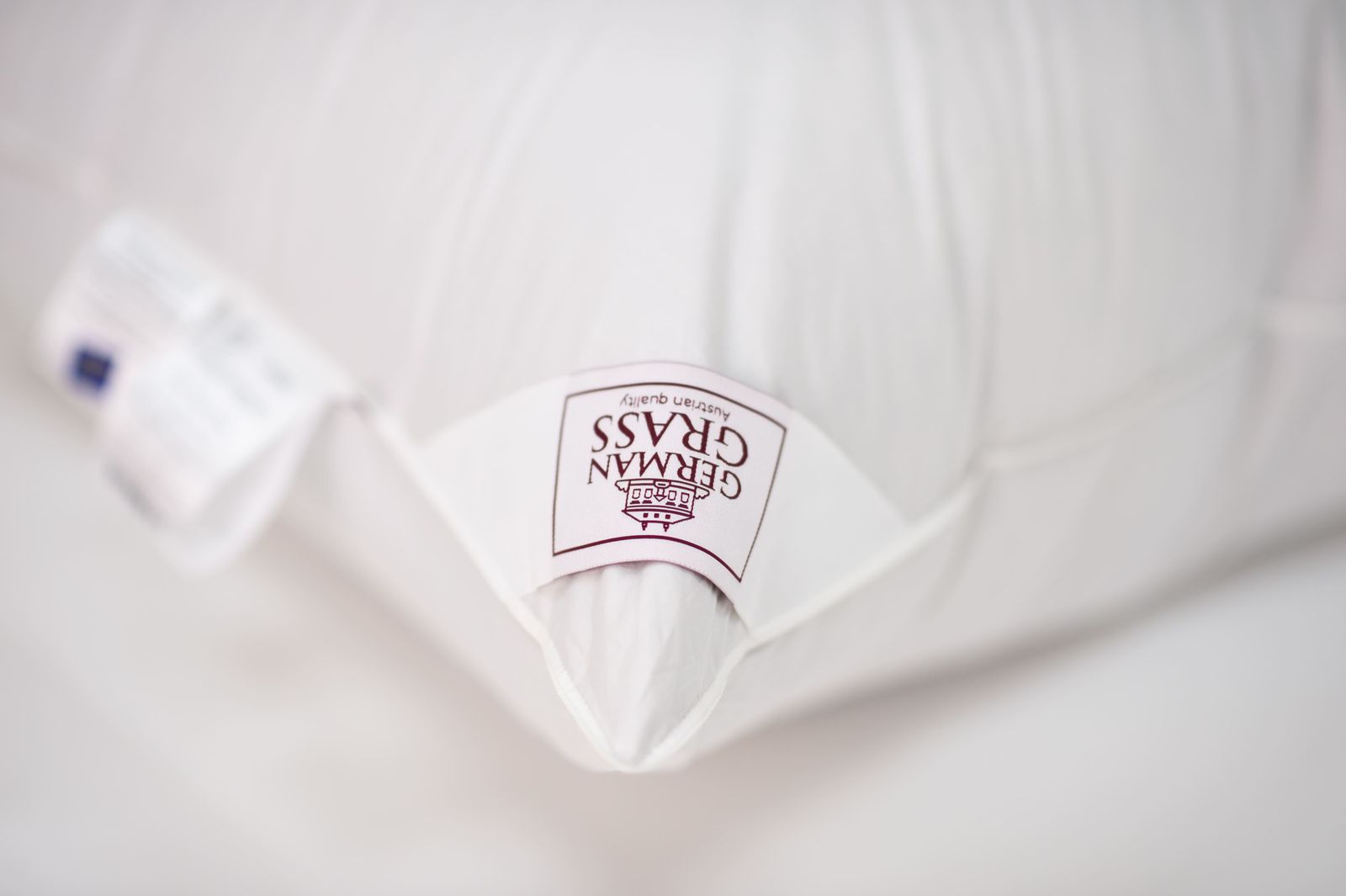 Подушки коллекции GRASS SILVER DOWN LINE наполнены пуховым наполнителем первой категории: серым пухом гусей Тулузской породы с добавлением мелкого перышка, что позволяет получить объём и упругость. Чехлы выполнены из немецкой ткани, прошедшей финишную обработку SanProCare® Sensitive, которая позволяет материалу усиленно поглощать и отдавать влагу. Ткани сертифицированы по OEKO-TEX® Standard 100 – международному стандарту безопасности текстильных изделий. Ткани, отмеченные маркировкой «Bramscher Tuch» – это безусловный знак качества и великолепный результат работы специалистов из города Бра́мше в Германии. Высочайшей оценки требует буквально все: от высококачественного сырья и тончайшей пряжи до заключительной эксклюзивной отделки тканей. Сочетание тонкой ткани и серого пуха придают изделиям серебристый оттенок, что легло в основу названия коллекции. Рекомендована стирка при температуре до 30°С.
