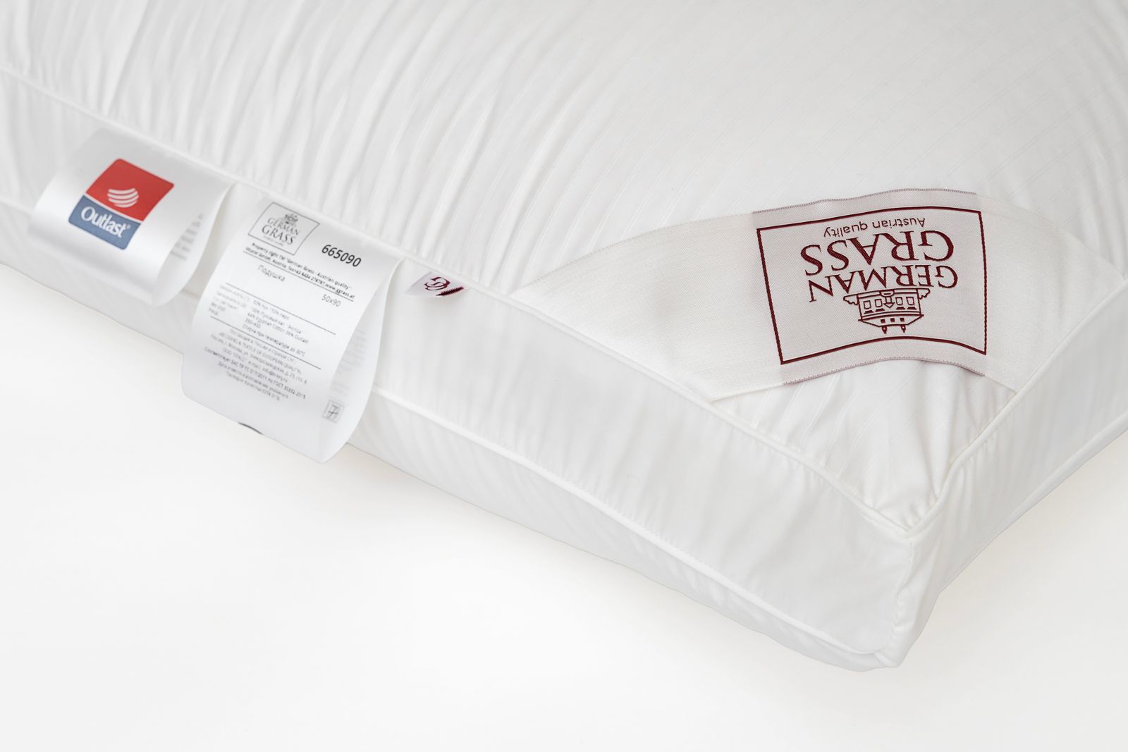 Объемные трехкамерные подушки «с бортиком» 3D Thermo Down Grass созданы специально для тех, кто ожидает от подушки не только правильной поддержки головы, но и поддержания комфортной температуры в этой области. Проактивное терморегулирование поверхности подушки основано на использовании ткани, в состав которой входят волокна Outlast®️*. Немецкий нежный батист (Nm60/40 TC234), сотканный из пряжи, состоящей на 64% из длинноволокнистого египетского хлопка и на 36% из Outlast®️, позволяет регулировать влажность с помощью гигроскопичных свойств хлопка и температуру посредством микрокапсул с воском, входящих в состав волокон Outlast®️. Микрокапсулы забирают и удерживают излишнее тепло, препятствуя перегреву и выделению влаги, и возвращают накопленное тепло обратно при снижении температуры, создавая постоянный комфортный микроклимат. При первичном контакте с тканью Outlast®️ возникает легкое ощущение прохлады за счет поглощения материалом тепла тела, и в течение пары минут материал адаптируется к температуре кожи и температура стабилизируется.